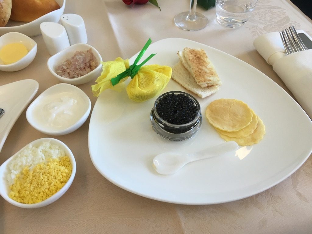 Im Asiana Airbus A380 gibt es zwölf großzügige First Class Suiten, welche sich mit Türen verschließen lassen. Natürlich erwartet Euch hier auch ein entsprechender First Class Service inkl. Kaviar.