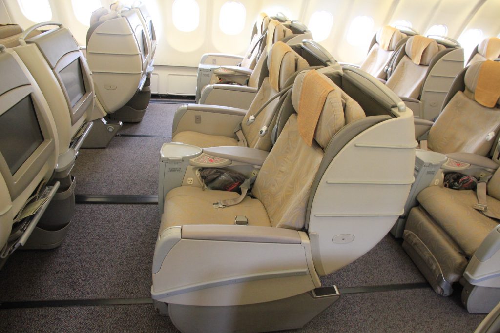 Innerhalb Asiens findet man in den Boeing 767, Airbus A330 und den zwei verbleibenden Boeing 747-400 einen Business Class Sitz, welcher sich nicht ganz flach stellen lässt. Bei den verhältnismäßig kurzen Flugzeiten ist dies allerdings sicher deutlich angenehmer, als ein Flug in einer europäischen Business Class.