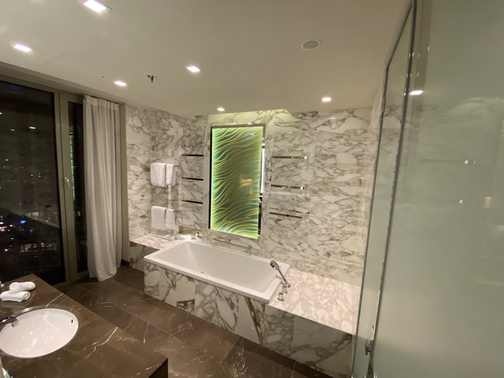 Aber auch über den Tag verteilt, kann man sich über den Room Service etwas bestellen oder im Restaurant ROCA entspannte, moderne Atmosphäre bei klassische mediterrane Küche genießen. Daneben gibt es aber auch noch in der Long Bar oder der Peacock Alley jede Menge Optionen, um das Hotelguthaben zu nutzen. Auch der High Tea in der Library Lounge im 15 Stock ist hier sicherlich eine Empfehlung.