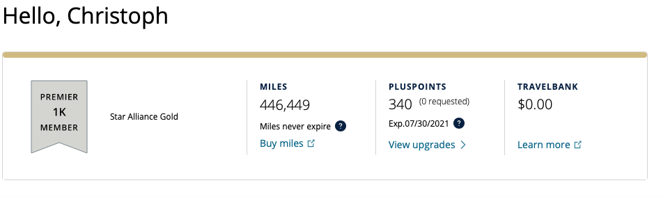 Generell haben sich aber bei mir vor allem in den letzten Monaten tatsächlich einige Meilen aufgestaut, da wir seit November 2019 keine Reise mehr geplant haben und unser Urlaub im April 2020 aus bekannten Gründen leider abgeblasen wurde. Eigentlich wollten wir hier in die USA und nach Hawaii.