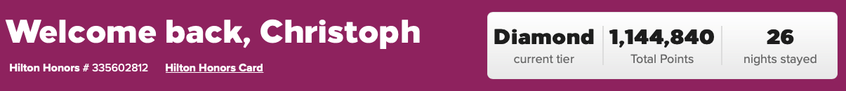 Hilton war eigentlich immer das von mir bevorzugte Hotelprogramm, was insbesondere daran lag, dass man hier extrem viele Punkte anhäufen konnte. Seit zwei Jahren habe ich keinen Hilton Punkt mehr eingelöst und bei etwas unter 200 Nächten haben sich über 1,15 Millionen Punkte angesammelt. Diese kommen vor allem durch das ständige Nutzen der diversen Aktionen, durch welche man durchaus auf sehr ansehnliche Summen kommt, auch mit weniger Nächten.