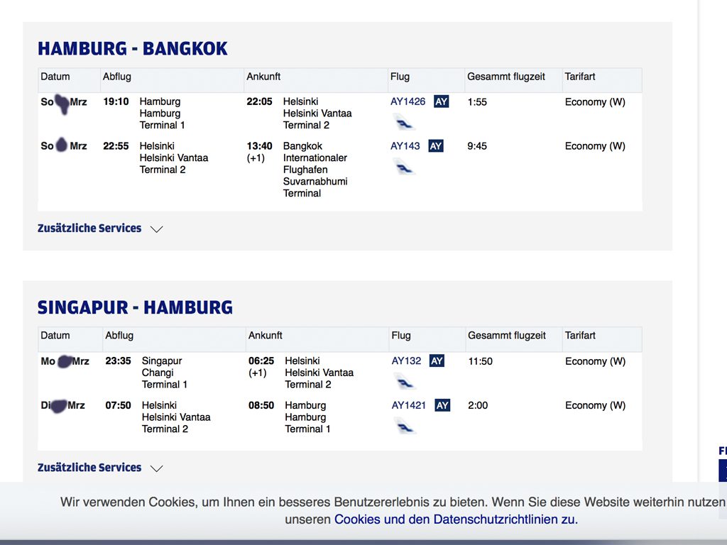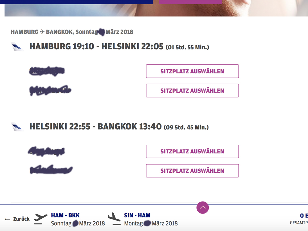 Es geht für zwei Personen im März von Hamburg nach Bangkok und von Singapur zurück.