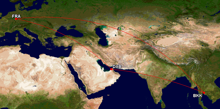 - Dank ORC erhaltet ihr die Meilen für die Strecke Frankfurt–Dubai–Bangkok, obwohl ihr Dubai nicht angeflogen habt.