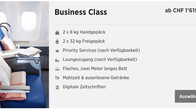 Etwas deutlicher ist der Unterschied in der Business Class, denn hier wirbt man bei Edelweiss explizit mit einem „flachen, zwei Meter langen Bett“, was man im Airbus A320 nicht bietet. Gerade das Bett ist für Business-Class-Passagiere natürlich eines der wichtigsten Verkaufsargumente und entsprechend sollte dies eine deutliche Kompensation nach sich ziehen.