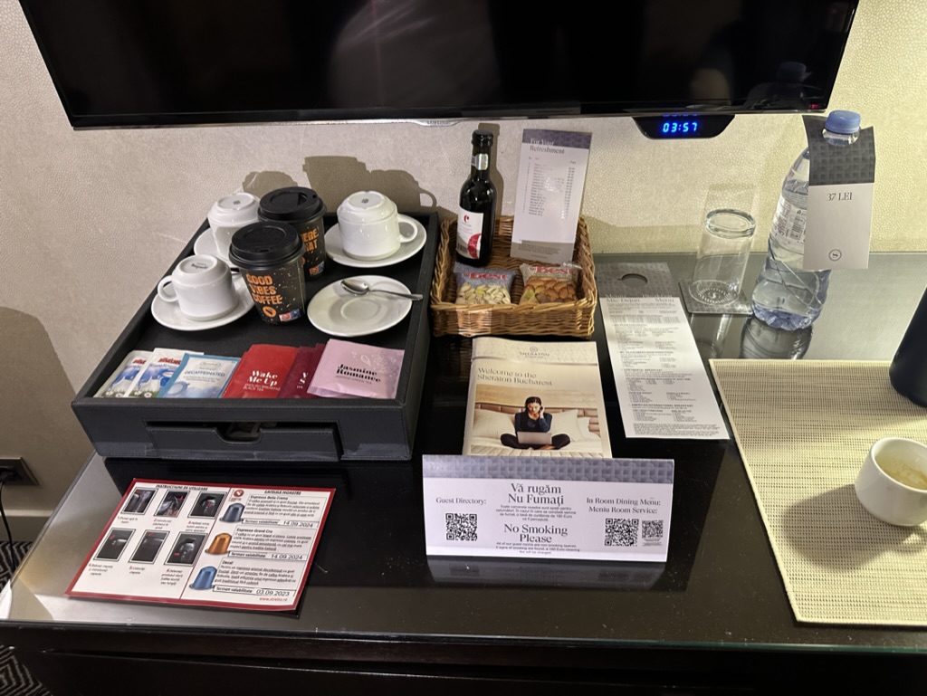 Diese Infos kann man kompakt per QR-Code, auf dem Fernseher oder in eine Schublade packen- manche Hotels übertreiben aber und verteilen zahlreiche Flyer, Hinweisschilder, Warnungen, Informationen und Werbung im ganzen Raum.