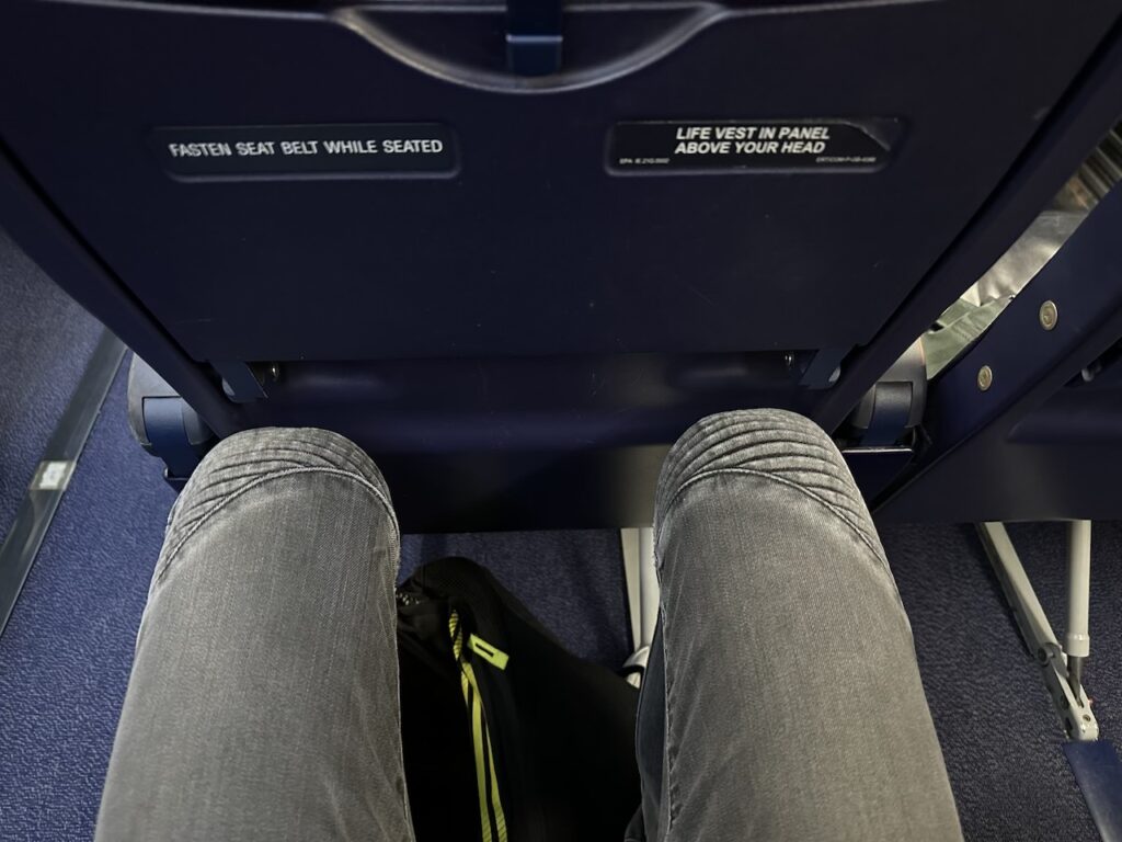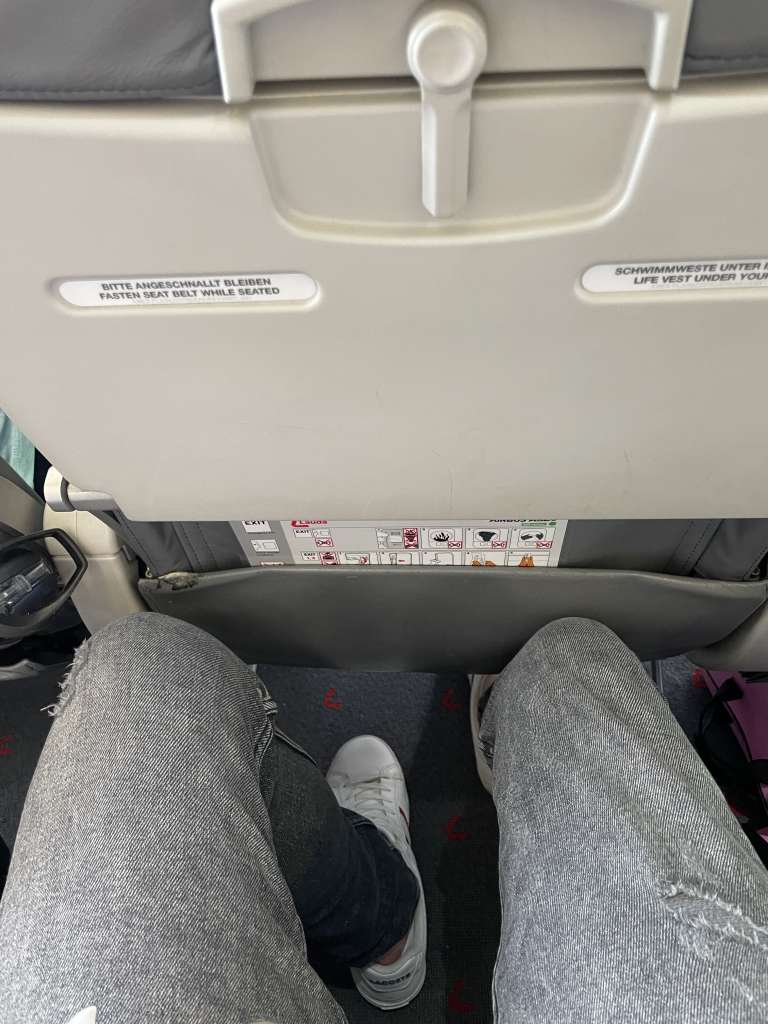 Bedenken müsst Ihr außerdem, dass Ihr keine Taschen oder ähnliches im Fußraum liegen haben dürft. Zumindest bei Start und Landung müssen alle Gegenstände weg.