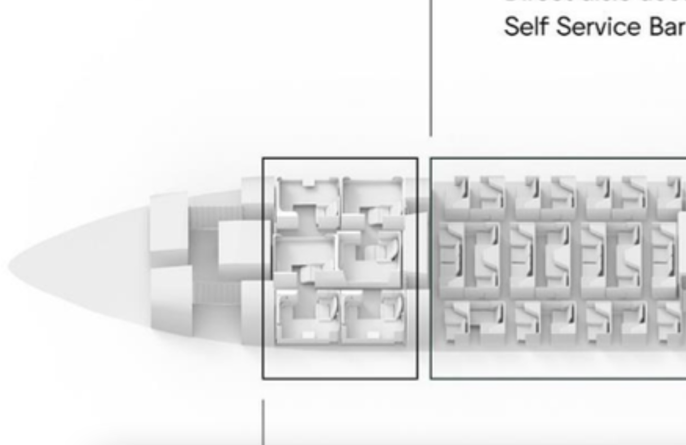 Was ich nicht ganz verstehe, ist, wie man 6 Sitze sinnvoll in der Nase verbauen möchte. Würde man die Suiten nur an die aktuellen Fensterplatzpositionen verbauen, was ich mit platztechnisch etwas schwierig vorstelle, würde der mittlere Bereich doch komplett ungenutzt bleiben… Und 7 Sitze sind wahrscheinlich auch nicht gerade der erwünschte Ansatz.