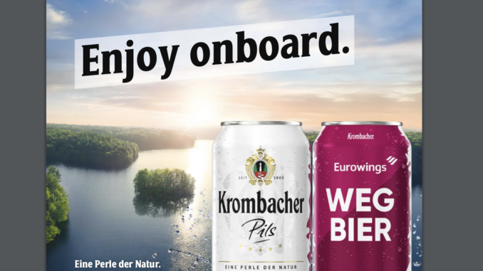 - Neues „Wegbier“ für Eurowings-Passagiere: In Kooperation mit Krombacher bietet Eurowings jetzt das „Wegbier“ für 4,50 Euro an und folgt damit einem Trend.