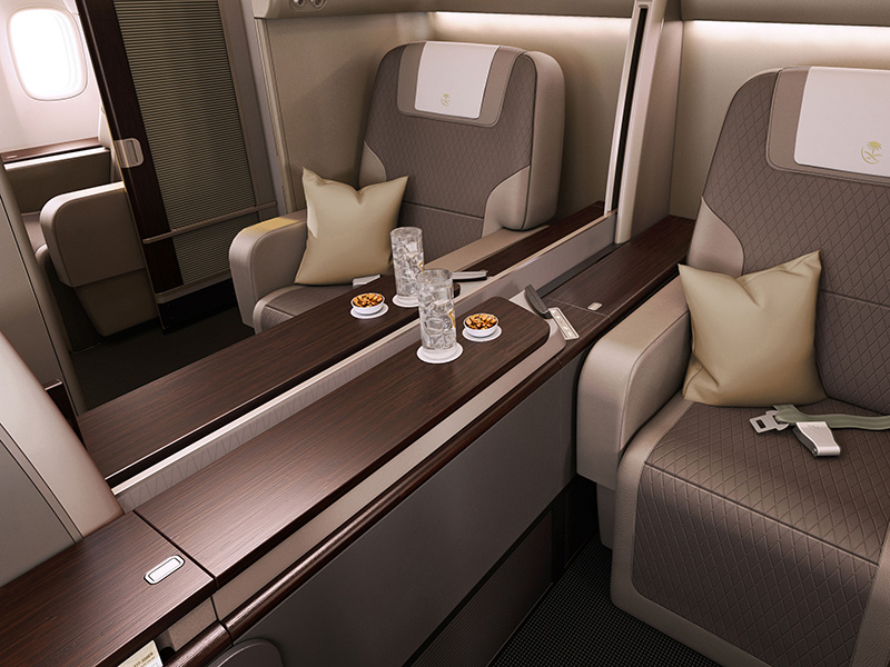 Auch wenn Saudia Airlines nicht als premium Airlines wie andere Gesellschaften aus der Region bekannt sind, man hat durchaus auch eine First Class, die mit Emirates und Co. mithalten kann, zumindest wenn man auf den Champagner an Bord verzichten kann.
