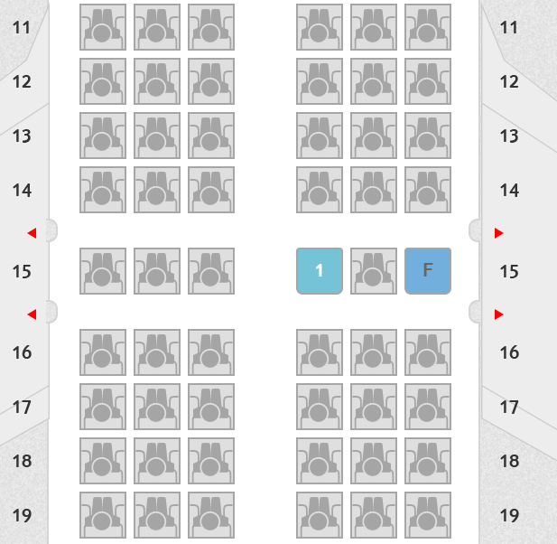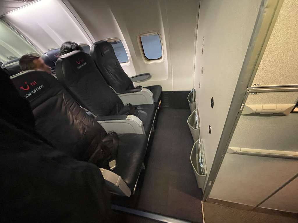 In Reihe 15 befindet sich die erste Reihe am Notausgang. Hier gibt es mehr Beinfreiheit, aber keine Möglichkeit, die Lehne nach hinten zu stellen. Das ist in Reihe 16 möglich. Auch hier gibt es mehr Beinfreiheit, da es auch hier einen Notausgang gibt. Der Zugewinn an Sitzabstand an den Notausgängen ist mit ca. 20cm großzügig bemessen. Jedoch dürfen hier nur Reisende ab 14 Jahren in guter körperlicher Verfassung sitzen. Hinter den beiden Reihen mit den Notausgängen folgen in den Reihen 17 und 18 noch einmal sechs „Comfort Seats“.