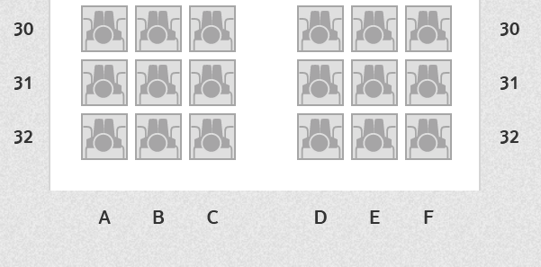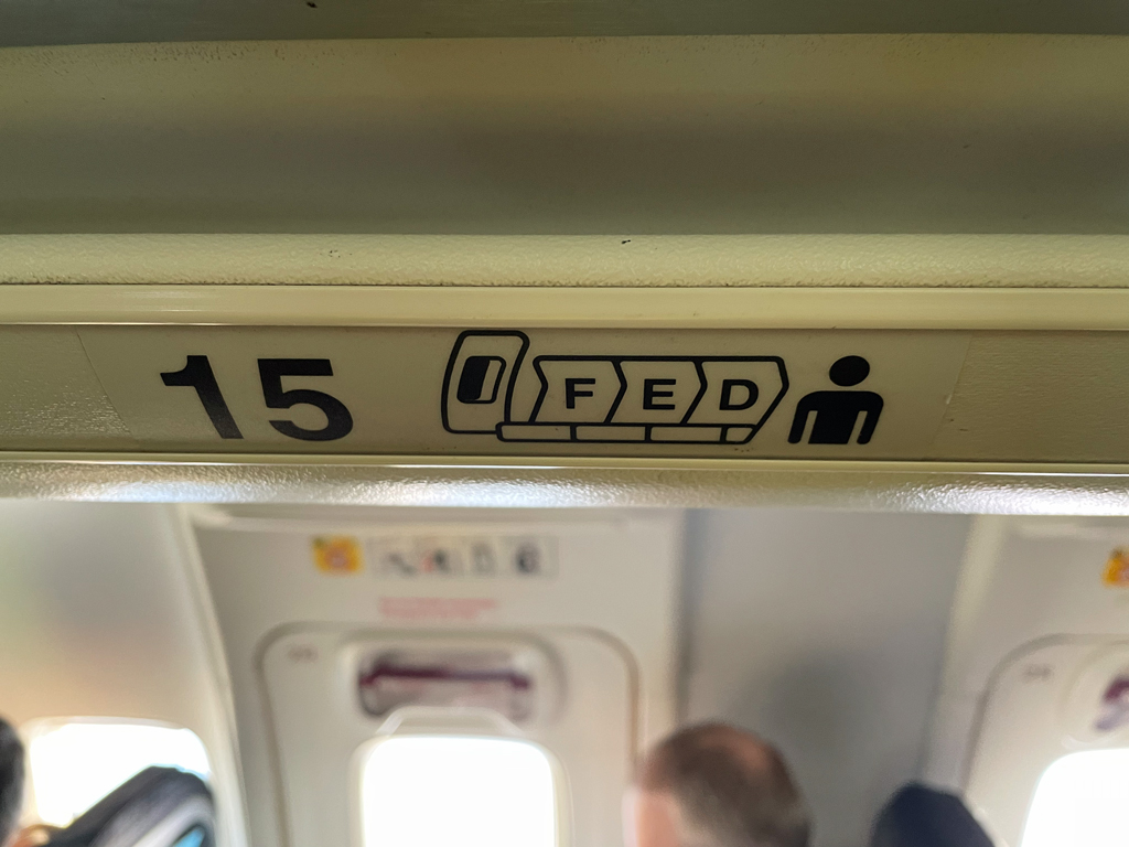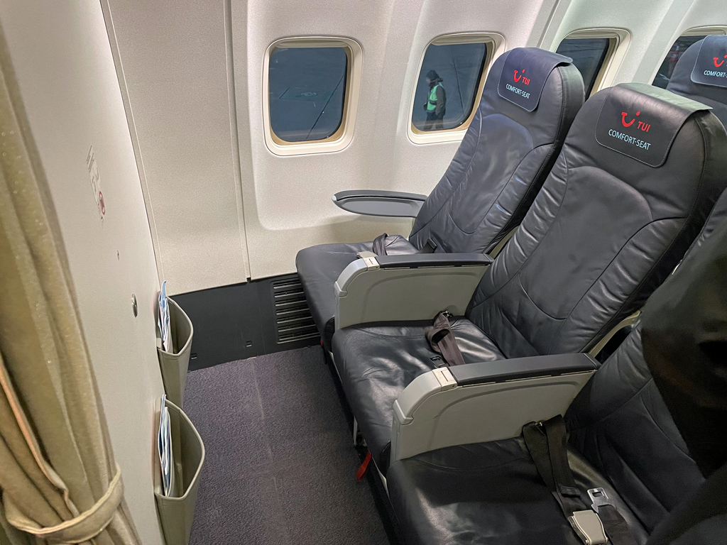 Die Sitze 2 ABC sowie 2-5 DEF waren als (Front) „Comfort Seat“ ausgezeichnet. Diese bieten bis zu 11cm mehr Beinfreiheit und die Möglichkeit, für aus dem Flugzeug auszusteigen.. Da sie nicht am Notausgang liegen, können sie von allen Reisenden belegt werden.