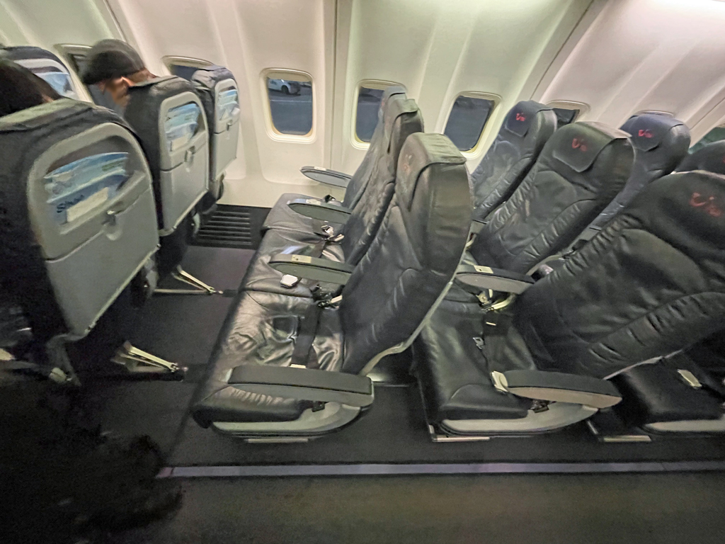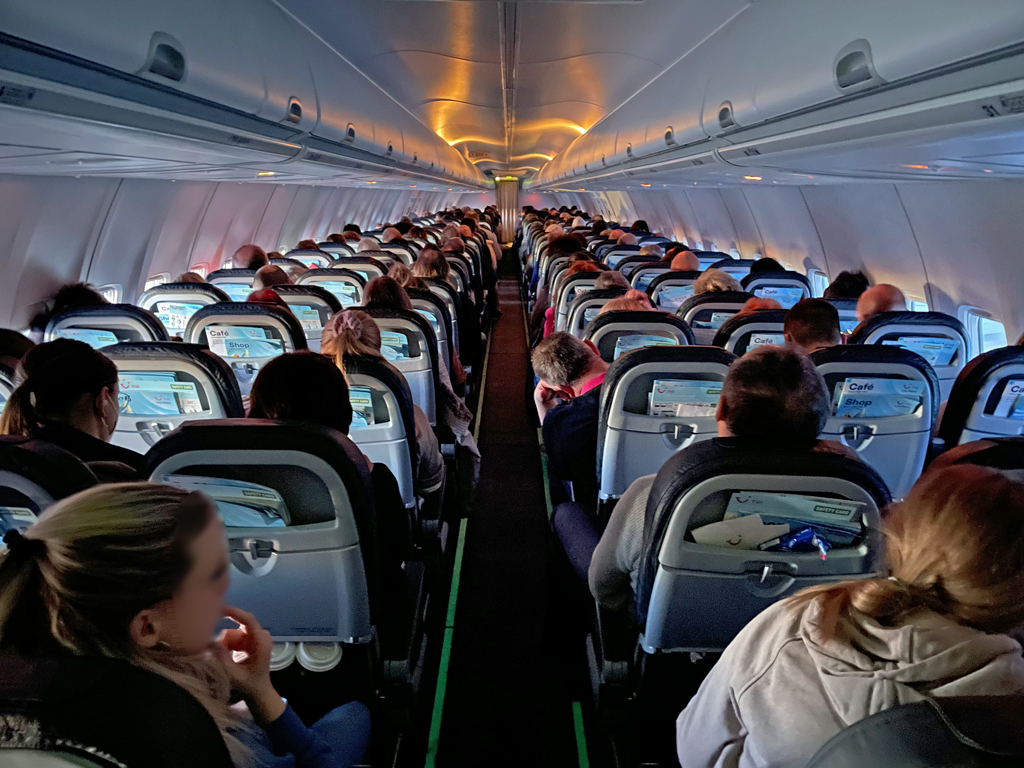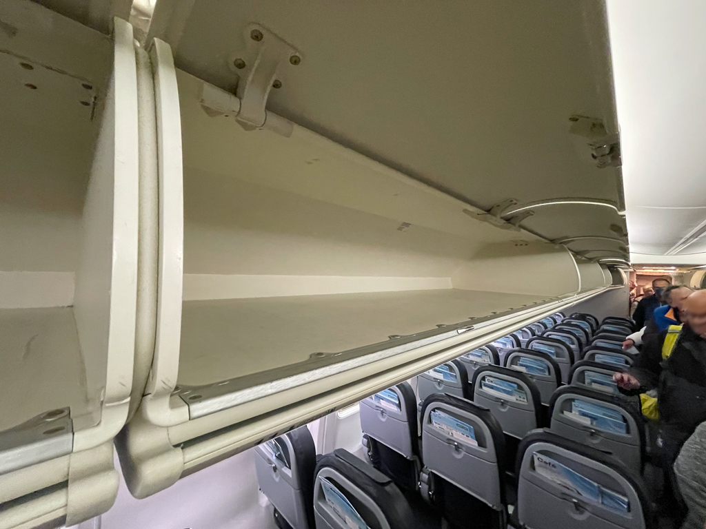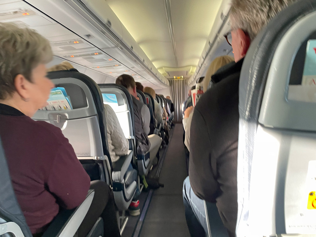 Die Passagiere hielten sich im Großen und Ganzen an die vorgegebene Reihenfolge. Als ich an Bord kam, saß jedoch schon ein Paar in Reihe zwei. Anscheinend wurden die Bordkarten nicht allzu genau überprüft (oder das Paar hatte auch noch Plätze weiter hinten im Flugzeug reserviert).