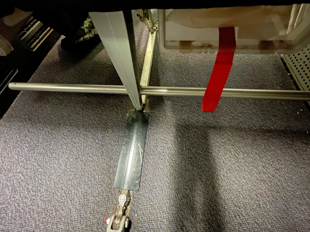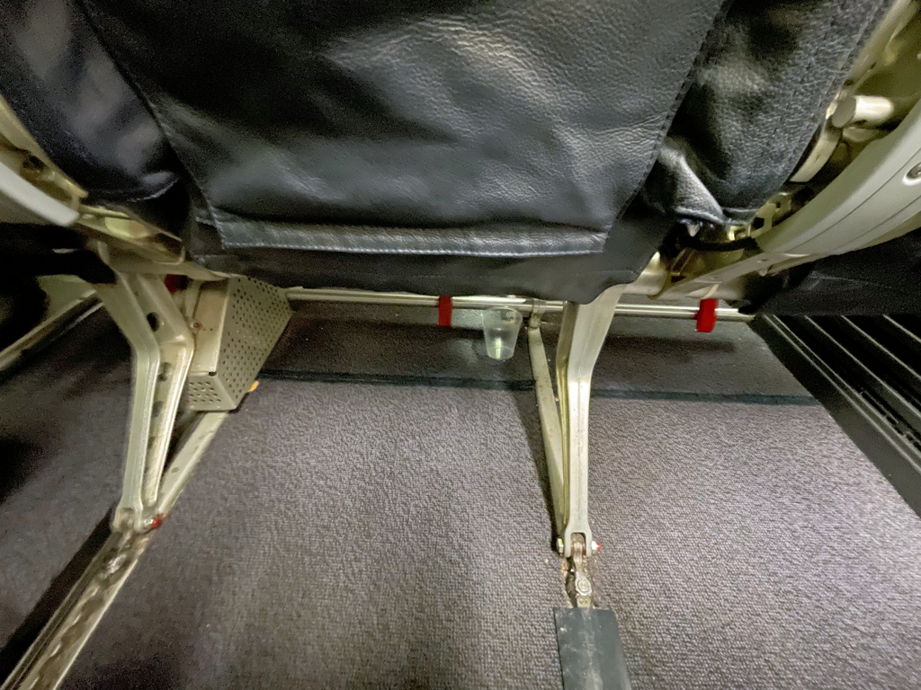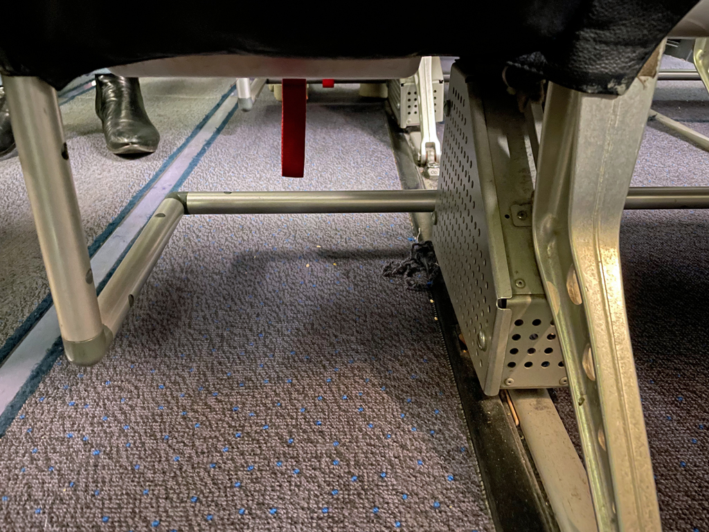 In den Sitzen C&D (Gang) ist der Fußraum etwas enger als in den Sitzen A, B, E und F. Das liegt daran, dass sich unterhalb der Vordersitze Boxen für das nicht mehr verwendete Entertainmentsystem befinden.