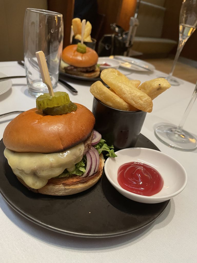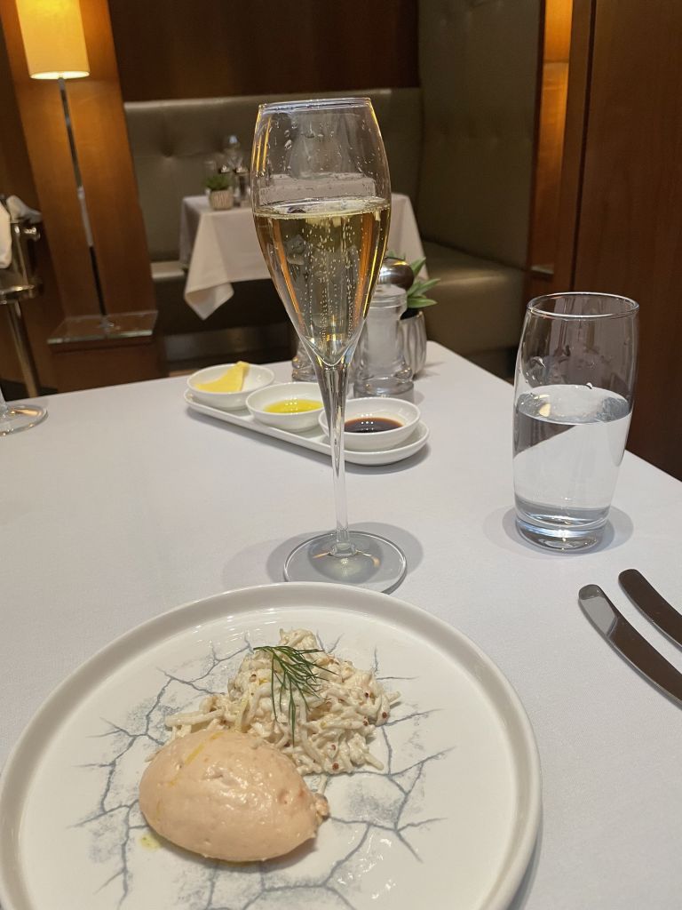 Aber zumindest konnte ich mich – zusammen mit Mathias – dann endlich einem 3-Gänge-Lunch mit Lachscreme, Concorde Room Burger und Käseplatte widmen. Doch auch das nicht in epischer Breite, denn nach all der Rennerei und Umbucherei war die Zeit schon weit fortgeschritten. Selbst mit der Verspätung, die der Eurowings-Flieger aus Hamburg kommend schon eingefahren hatte. Es war Zeit mich zu verabschieden und ins Terminal 2 zu wechseln.
