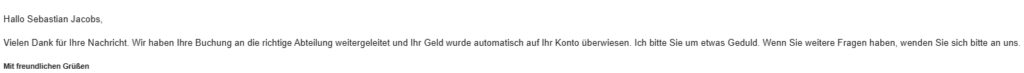 [Update] Pünktlich zum Ablauf der Frist geschah dann das, mit dem ich fest gerechnet hatte. Eine E-Mail von Eurowings trudelte bei mir ein. Diesmal aus der Rechtsabteilung des Low Costers. Eine freundliche Entschuldigung für mein Kundenerlebnis und die Bestätigung, dass der Flug voll erstattet wird, es aber noch ein paar Tage dauern könne. Den Prozess wolle man intern vollumfänglich aufklären.