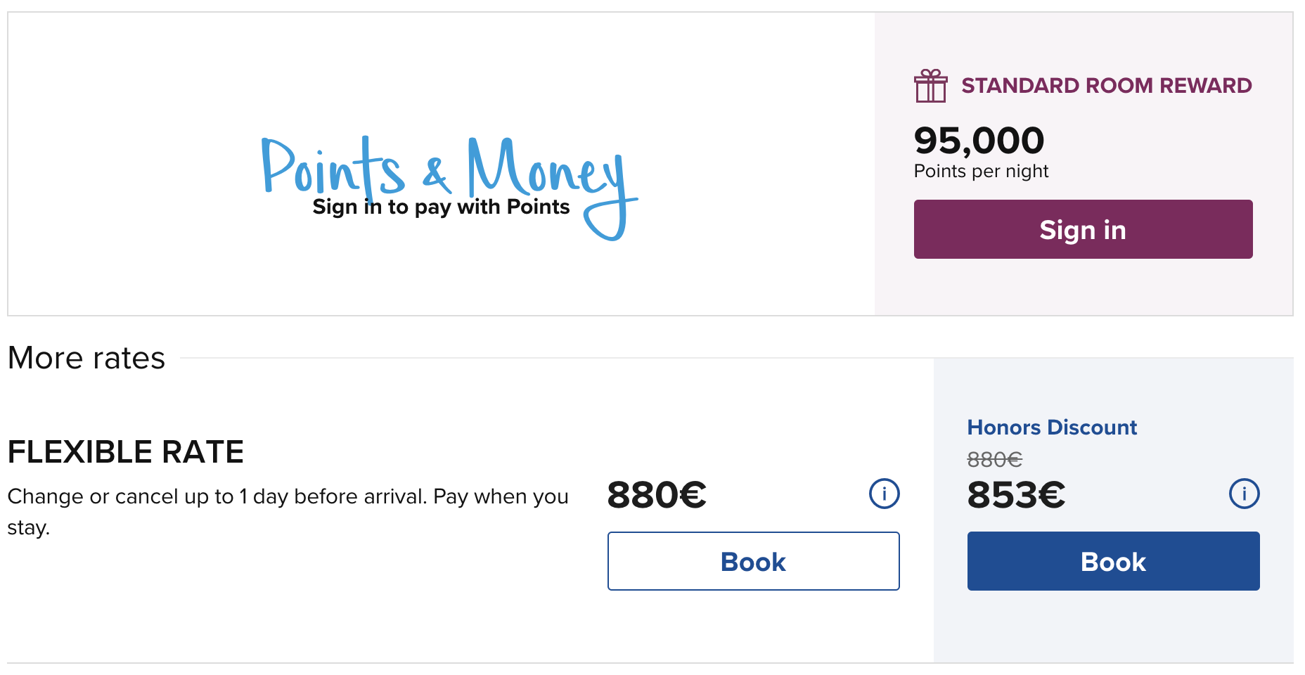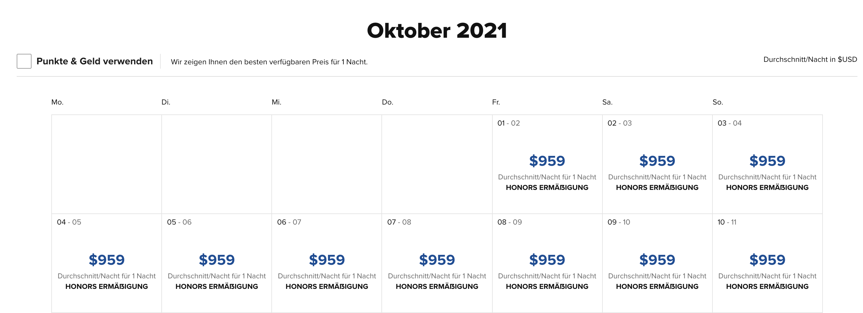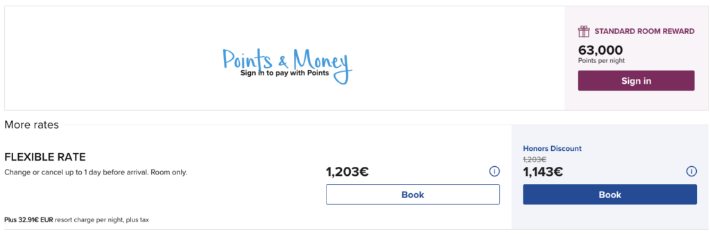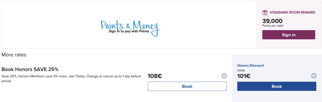 An einem späteren Termin beträgt der Preis 39.000 Punkte oder 101€ (€-Preise für Hilton Honors Teilnehmer – auch ohne Status).