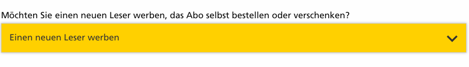 So gibt es bei allen Abos unter der Option: “ Das Abo ist für mich selbst“ und „Einen neuen Leser werben“. Hierbei sind besonders die Abos, bei welchen man einen neuen Leser wirbt für Meilensammler interessant, da diese die beste Ratio bieten.