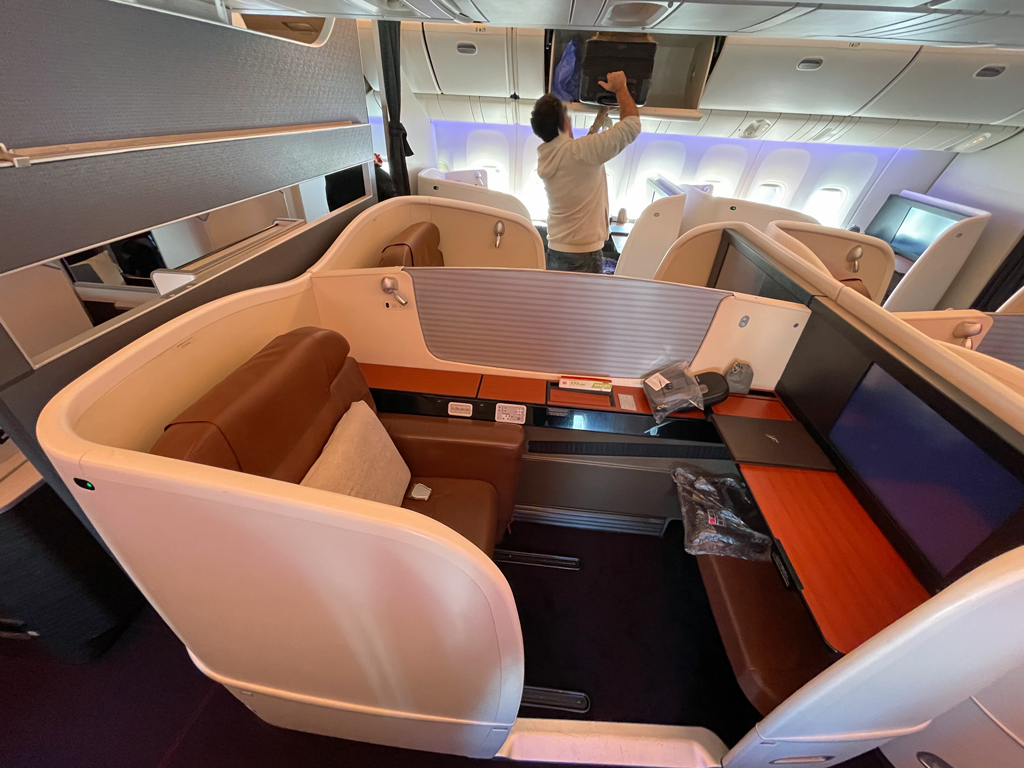 Gerade im Airbus A350-1000 mit der etwas schmaleren Kabine im Vergleich zur Boeing 777-300er, ist dies schon fast geboten, wenn man an den Trend in der Branche denkt, dass First Class Suiten immer größer werden. Airlines wie Lufthansa, Qantas, Emirates oder Cathay Pacific haben bei ihrer neuen First Class daher auch schon vom klassischen 1-2-1 Layout Abstand genommen.