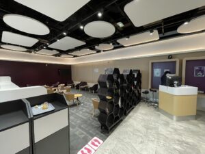 Beim Verlassen der Lounge muss man wie ein Hotelgast die Zugangskarte wieder am Front-Desk abgeben.