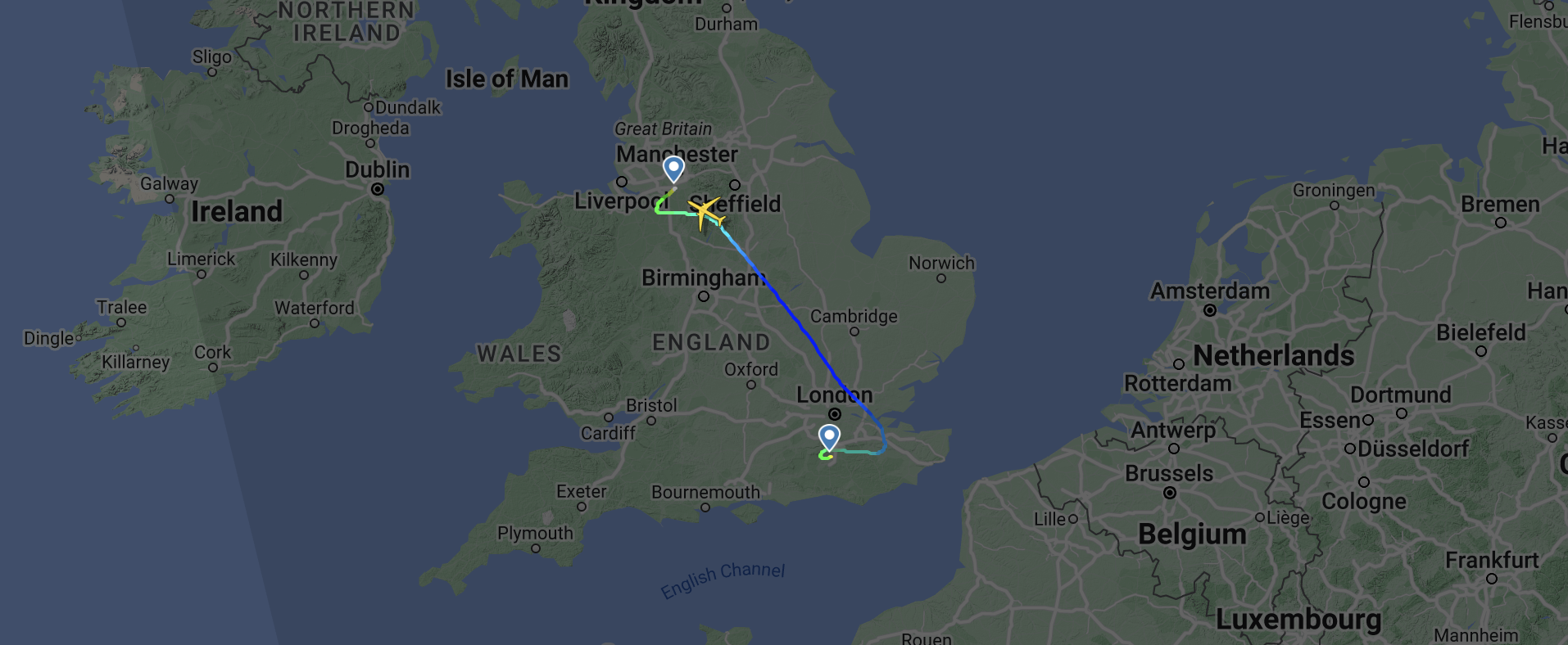 Mit dem Zug ist es gerade mal 2 Stunden nach Manchester von London. Das wäre die passende Lösung gewesen.