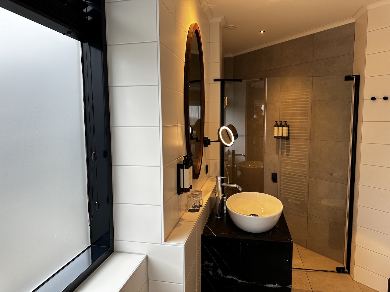 Bei der zugewiesenen Junior Suite handelte es sich um ein etwas größeres Zimmer mit breiter Fensterfront und entsprechend viel Tageslicht.