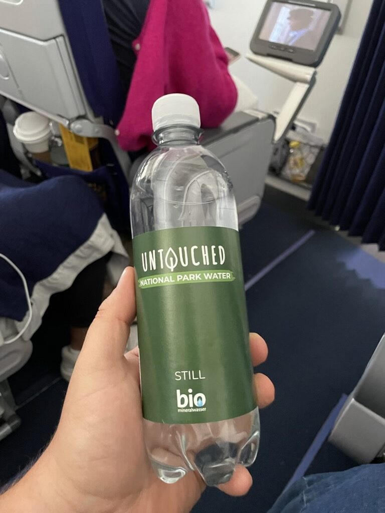 Während des Fluges war die Crew dann nicht mehr wirklich sehr präsent in der Kabine und auch das alt bekannte Tablett mit Saft und Wasser, mit welchem man alle 90 Minuten durch die Kabine gekommen ist, gibt es wohl nicht mehr. Stattdessen bekommt man bei der Nachfrage nach etwas zu trinken erst einmal noch eine Flasche Wasser angeboten, wobei mir bei meinen beiden Nachfragen auch direkt gesagt wurde, dass ich auch alles andere aus der Bar haben könne, was man an Bord hat.