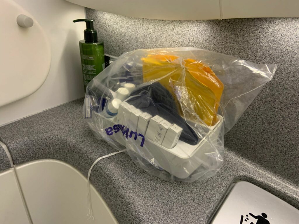 Mittlerweile bietet Lufthansa ihren Gästen in der Business Class auch wieder Amenity Kits in den Waschräumen an. Diese wurden bereits kurz nach dem Start ausgelegt, aber leider erst nach über zwei Stunden ausgepackt und den Gästen zugänglich gemacht- schade. Natürlich hätte man die Items relativ problemlos herausfusseln können, aber so etwas sollte der Crew auffallen.